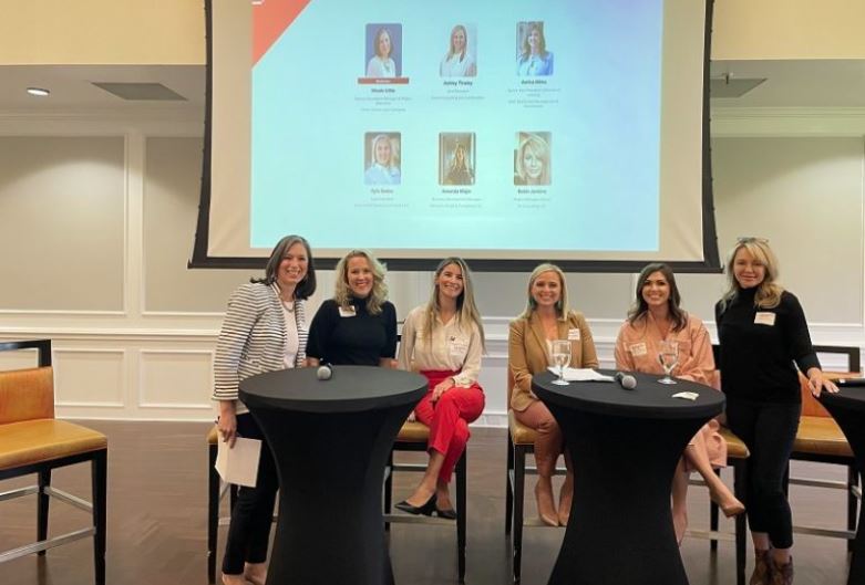 The Real Estate Development and Construction Market Outlook panel featured Nicole Little, deputy operations manager and project executive with Turner Construction Company; Kyla Sadau, superintendent with Scott & Reid General Contractors Inc.; Amanda Major, business development manager with McCarthy Building Companies; Ashley Tinsley, vice president with Evans Consulting and Construction; Aarica Mims, senior vice president and director of leasing with KDC Real Estate Development & Investments; and Robin Jenkins, project manager and owner with RJ Consulting LLC.
