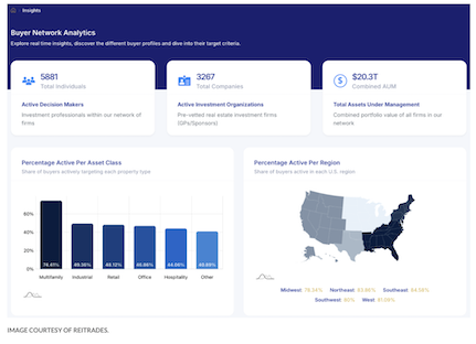 REItrades brings together decision makers from established institutional real estate investment firms, who are actively seeking opportunities nationwide and across all asset classes. Access to the platform is by invitation or application only. Buyers must meet minimum requirements ($50M+ AUM) to join, showing that they are financially capable and have the expertise to deal directly. No intermediaries are allowed. Over the past 3+ years, REItrades has built a network, one connection at a time, which now encompasses over 5,600+ decision makers from over 3,250+ GPs. The goal: to connect with each and every GP active in the institutional commercial real estate space, so sellers don’t have to pay high commission fees to reach this small niche of buyers, creating a highly competitive sales process similar to traditional methods.